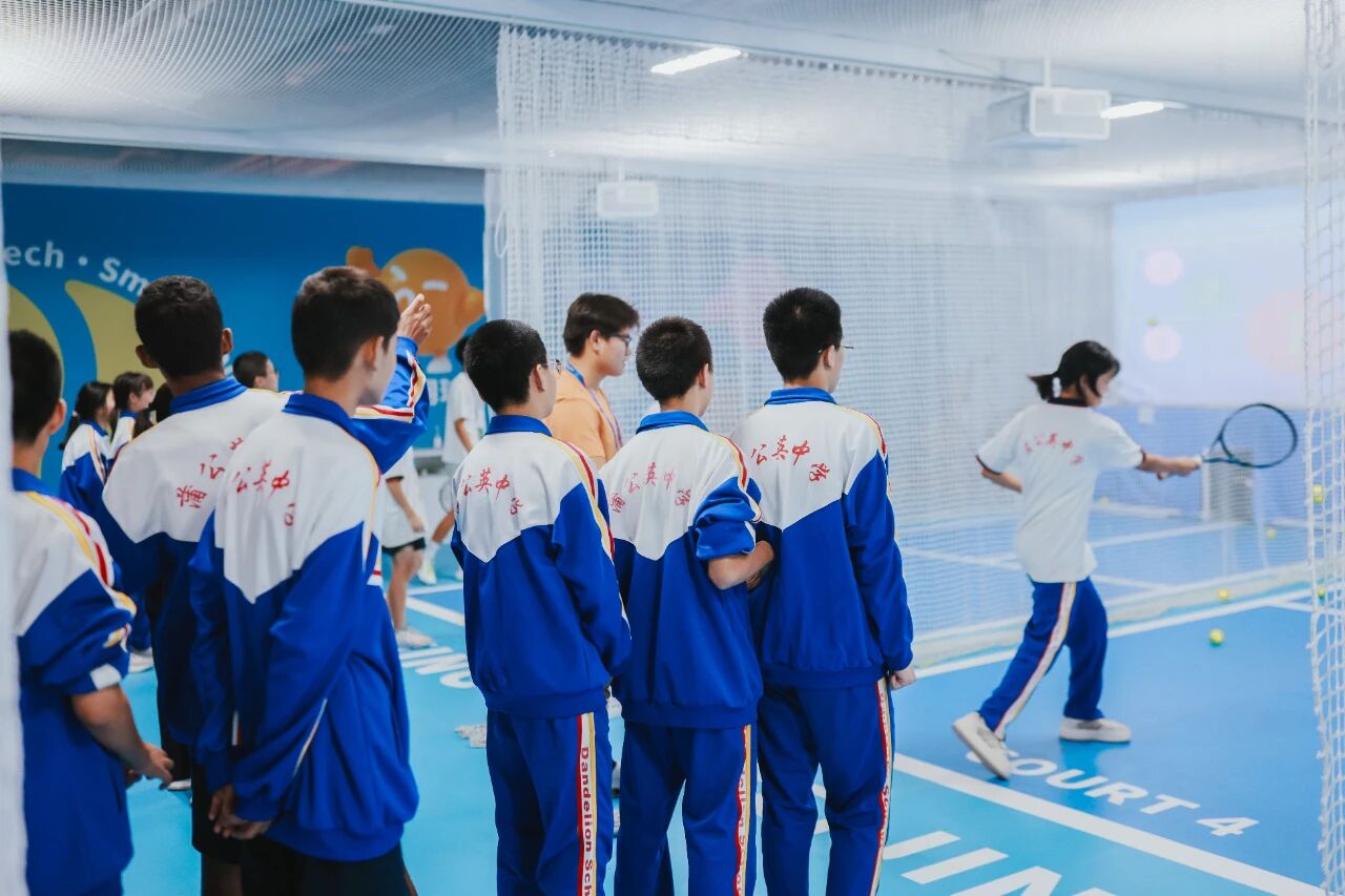 在国网AI学练中心,同学们手握球拍,体验智能科技与网球运动交融的魅力。AI系统实时捕捉每个人的挥拍动作与击球轨迹,精准分析角度与力度,即时反馈训练效果。在专业教练的指导下,学生们认真调整姿势、尝试击球,清脆的击球声与欢快的笑声此起彼伏,场馆内洋溢着跃动的青春气息。