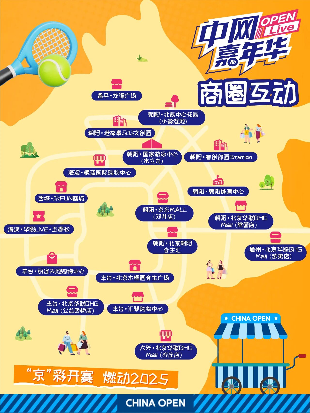 2025中网“第二现场”计划将国际顶级网球赛事与城市文化、商业消费和旅游体验深度融合,为市民和游客打造“跨界融合、多圈拓展、因地制宜、全城联动、辐射全国”的观赛新体验,让网球热潮从赛场蔓延至全城,让高端体育赛事从专业场馆走向城市街巷,演变为人人可参与的城市节日。