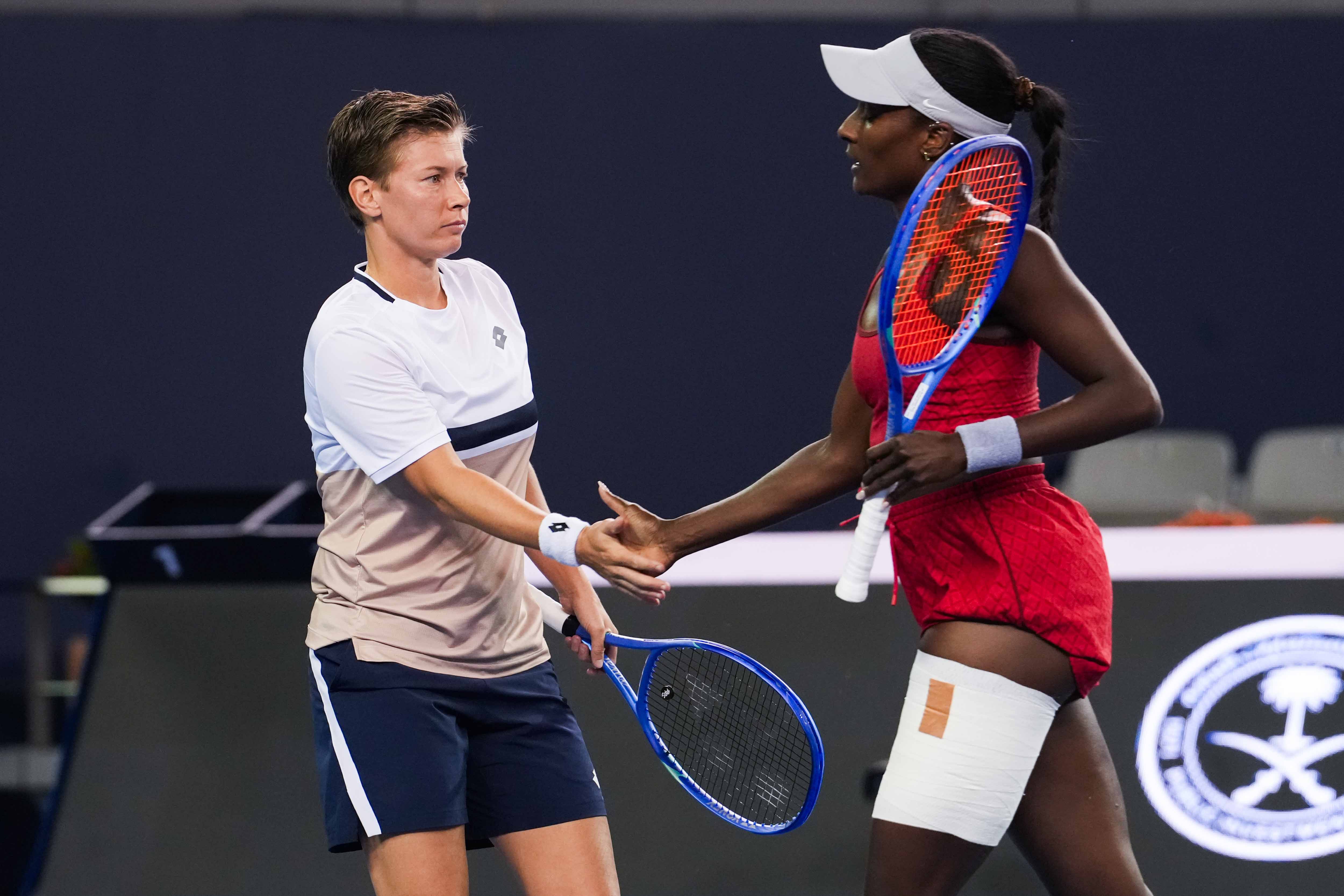 女双第二轮,外卡组合韩天遇/穆霍娃7:6(4))/6:1淘汰6号种子穆罕默德/斯楚尔斯,锁定最后一个八强席位!她们将和达尼丽娜/克鲁尼奇争夺四强。