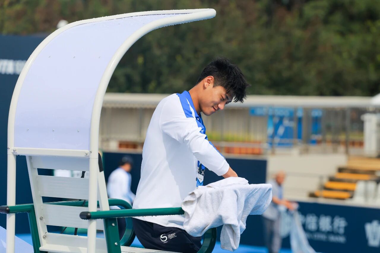 清晨九点的国家网球中心,第一批“蓝精灵”已到岗。三天来,从生疏到熟练,他们的身影成了球员与观众最安心的依靠。