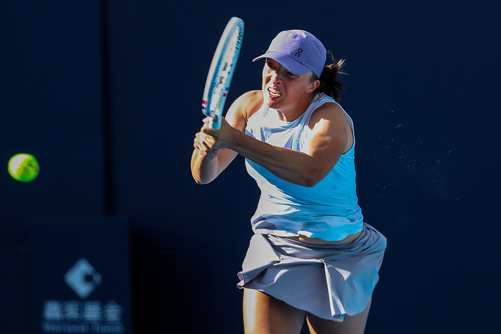 No. 1 seed Iga Swiatek advanced to the Round of 16 of the China Open after a trailing Camila Osorio retired due to injury, 6-0, 40-0 (ret.), Monday Sept. 29, on the Lotus Court. Osorio became one of five WTA players in Round 3 who retired from a match due to injury.