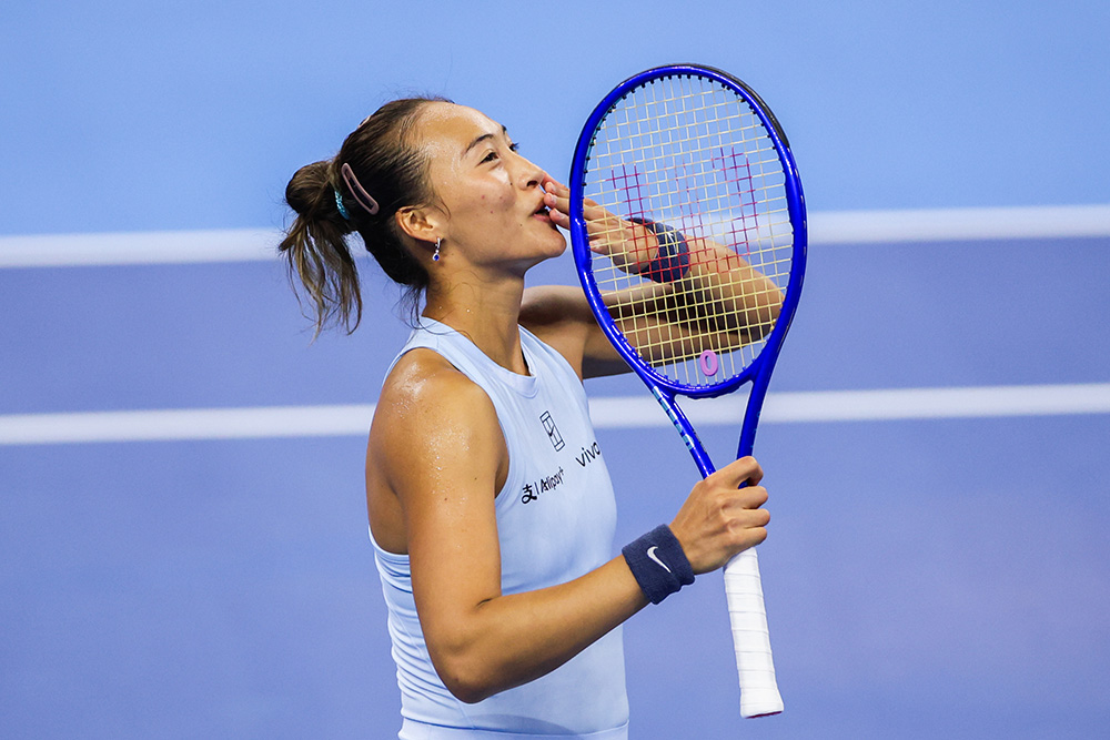 No. 7 seed Zheng Qinwen blows a kiss to the Diamond Court crowd after winning 6-3, 6-2 against Emiliana Arango in the second round on Saturday, Sept. 27. Zheng’s return to the court after undergoing elbow surgery in July ignited Chinese audiences, who packed out the stands for her matches. Zheng retired from the third round against Linda Noskova.