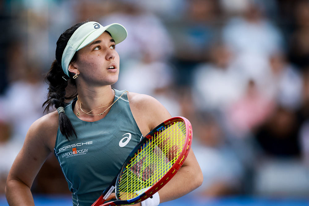 Sonay Kartal prepares a backhand for Linda Noskova in their quarterfinal match on Friday, Oct. 3. Kartal defeated No. 4 seed Mirra Andreeva in the Round of 16 but lost to Noskova 6-3, 6-4.