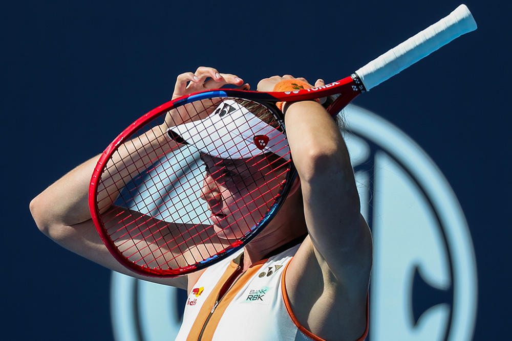 No. 8 seed Elena Rybakina adjusts her hair during her third round match against Eva Lys on Sunday, Sept. 28. Rybakina was upset by the 23-year-old German 6-3, 1-6, 6-4.